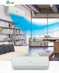 کولرگازی اینورتر گرین از ظرفیت‌های ۹۰۰۰ الی ۳۰۰۰۰ Btu/h تولید و به بازار عرضه می‌گردد. کولر گازی گرین اینورتر با قابلیت تامین سرمایش و گرمایش برای استفاده در واحدهای مسکونی، اداری، فروشگاهی و … در مناطق معتدل عرضه شده است. کولر گازی اینورتر گرین با داشتن فناوری اینورتر، محصولی کم مصرف با رده انرژی A است و با بهره گیری از کمپرسور روتاری و گاز مبرد R410a کار می کند.